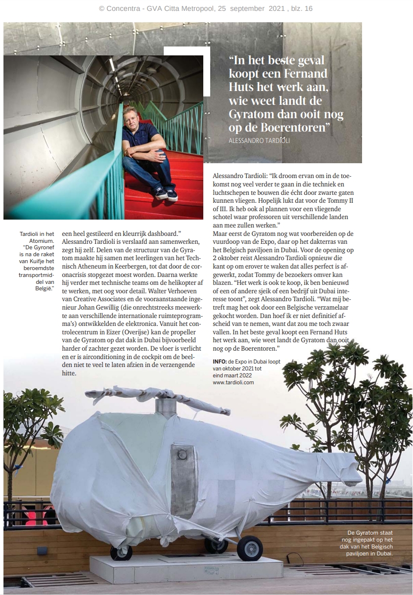 We are part of the team that builds the iconic helicopter named "The Gyratom", which is an enhanced version of the "Gyronef" known from the comic book series "Suske (Willy) & Wiske (Wanda)", written by Willy Vandersteen.
